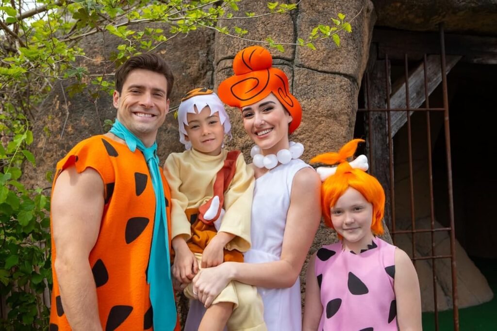 Fred, Wilma, Barney, and Betty bring Stone Age fun. Add bone accessories and animal prints. Easy DIY costumes with big impact.