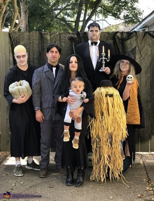 Dress up as Morticia, Gomez, Wednesday, Pugsley, and Uncle Fester. This spooky clan always makes a statement. Black outfits and pale makeup are all you need.