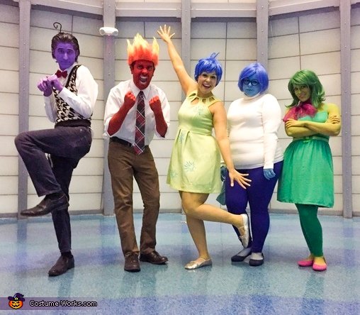Dress as Joy, Sadness, Anger, Fear, and Disgust. Bright wigs and face paint sell the look. Fun and colorful for a big group.
