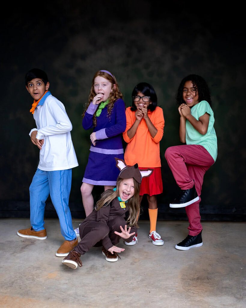 Shaggy, Velma, Daphne, Fred, and Scooby never go out of style. Bright colors and a stuffed Scooby complete the look. Perfect for mystery-solving fun.