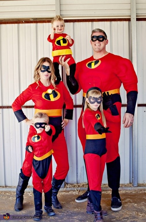 The red superhero suits are iconic. Add masks and logos for a quick group transformation. Works great for families with kids.