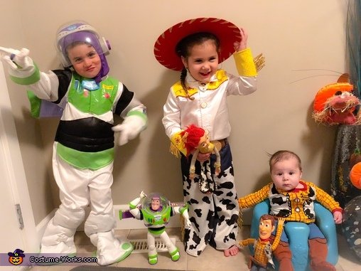 Buzz, Woody, Jessie, and the aliens are classic group favorites. Add accessories like cowboy hats or space wings. Ideal for Disney lovers.