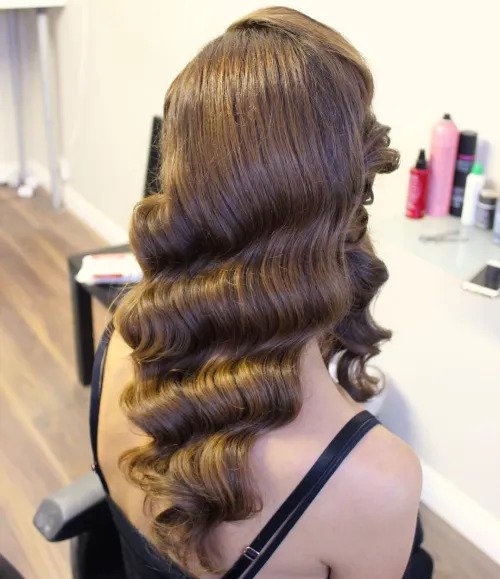 Bring back the golden era with glossy, sculpted waves. Use gel and clips to shape each curve perfectly. It’s the ultimate look for vintage elegance.