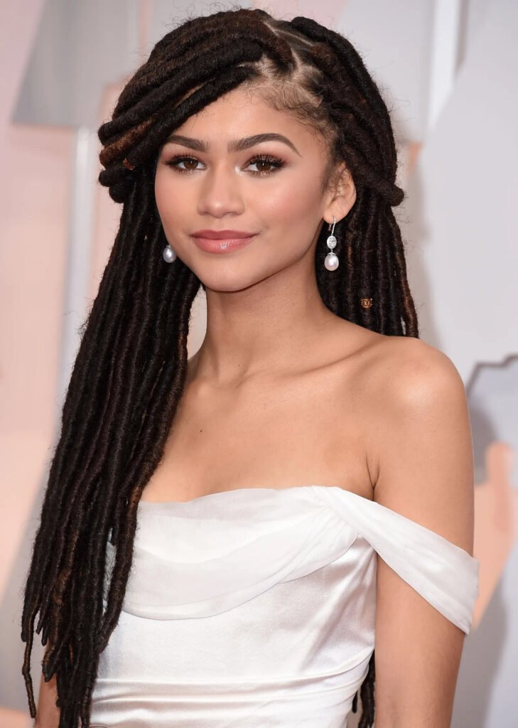 Add a playful twist to your braids by decorating them with hoops and charms. The look is edgy yet effortless. It’s the perfect blend of creative and cool-girl energy.