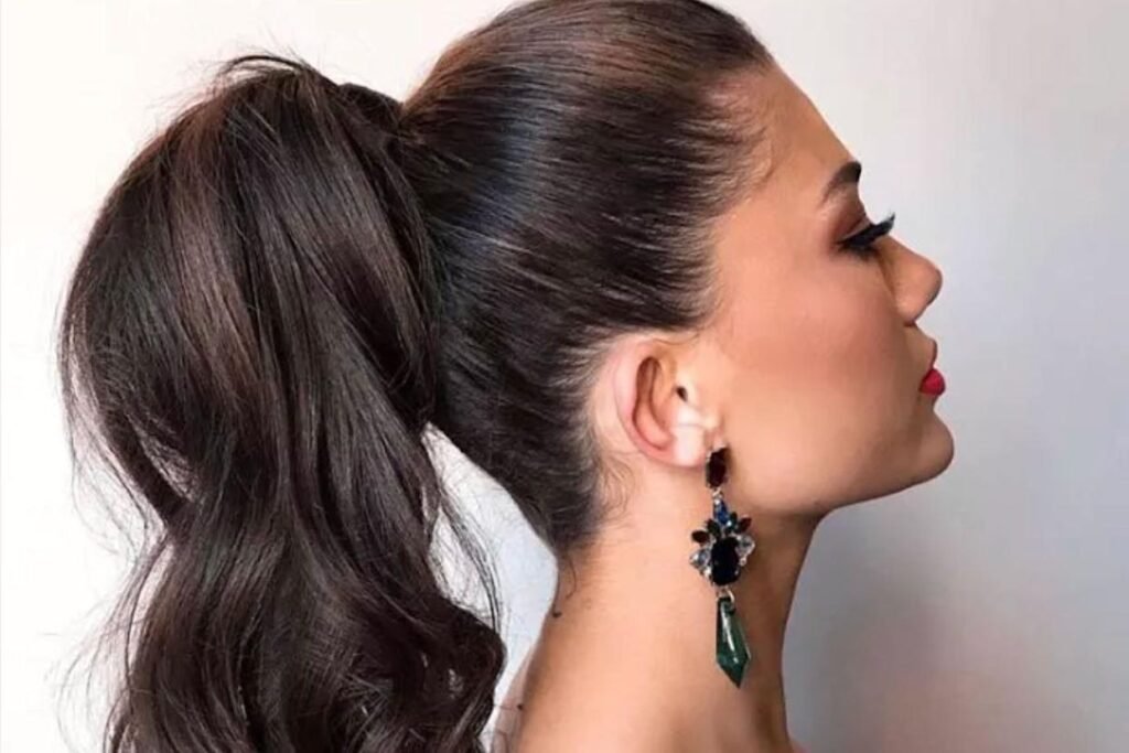 A retro-inspired ponytail never goes out of style. Add a twist of hair around the base for a clean, modern finish. It’s sleek, flirty, and perfect for showing off those earrings.