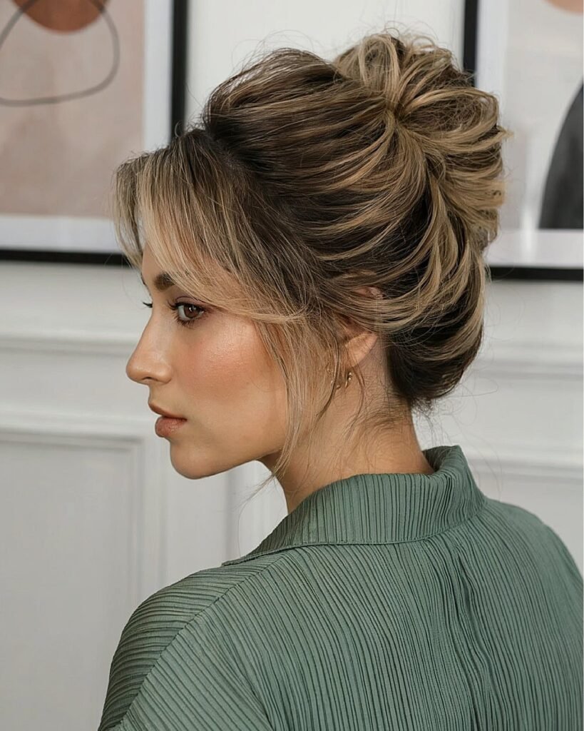 Add drama to a classic French twist with teased volume and a statement clip. This hairstyle feels timeless but with a trendy update. Elegant, bold, and totally photo-ready.