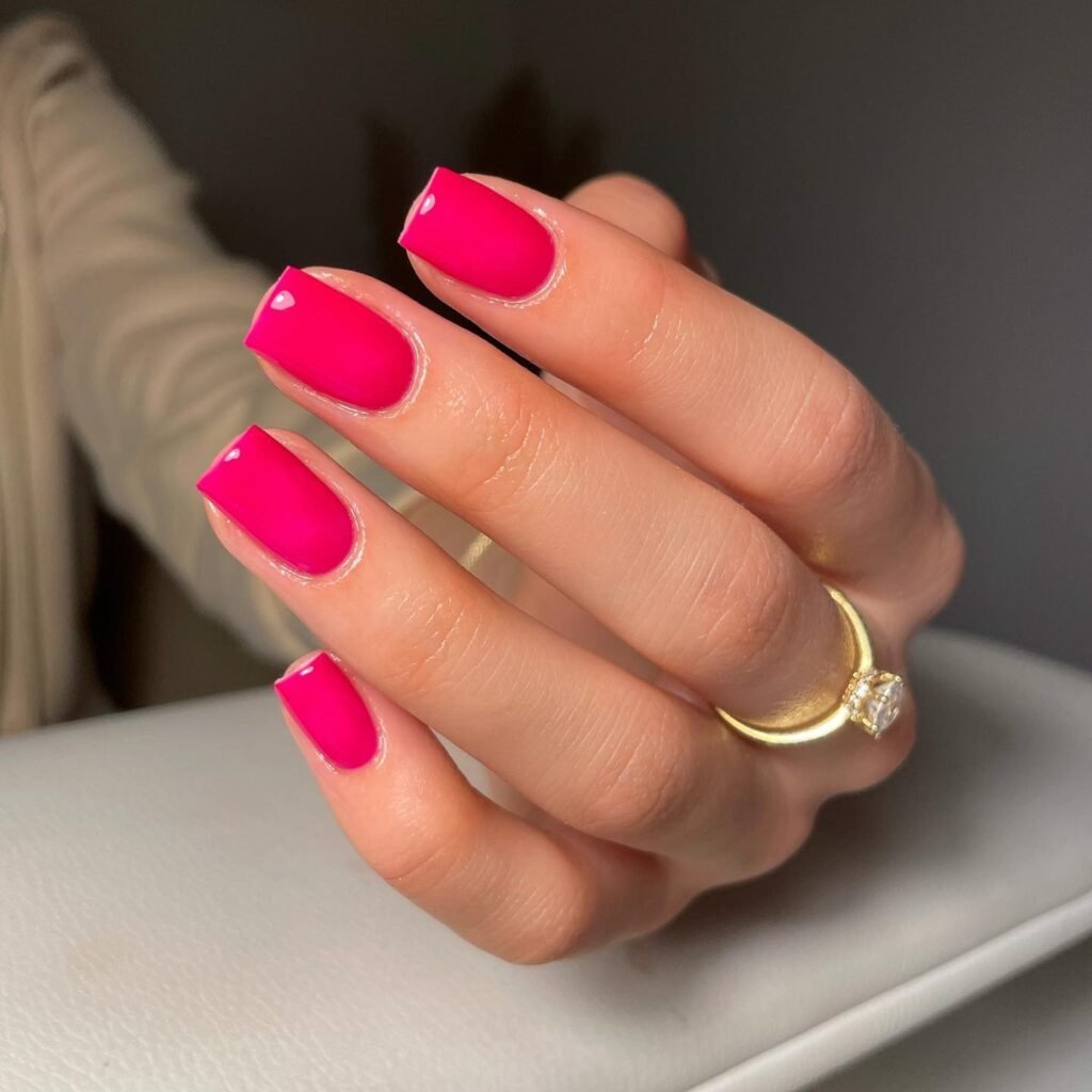 Bold girls will love this hot pink manicure because it instantly makes a statement. The short square shape keeps the style practical and easy to wear, while the vivid neon shade brings all the fun, confident energy. If you’re searching for bright pink nail ideas that are simple, trendy, and salon-friendly, this look is an easy screenshot for your next appointment.