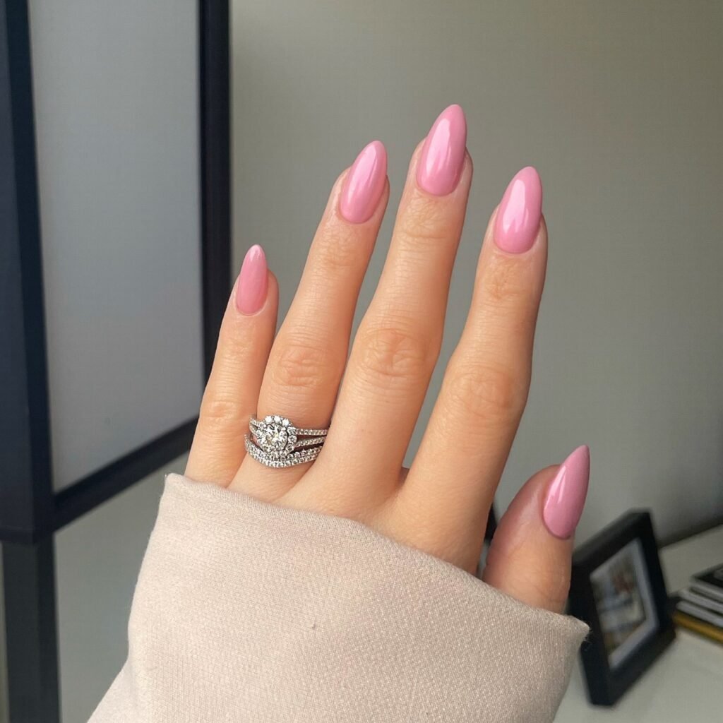 Glossy Baby Pink Almond Nails