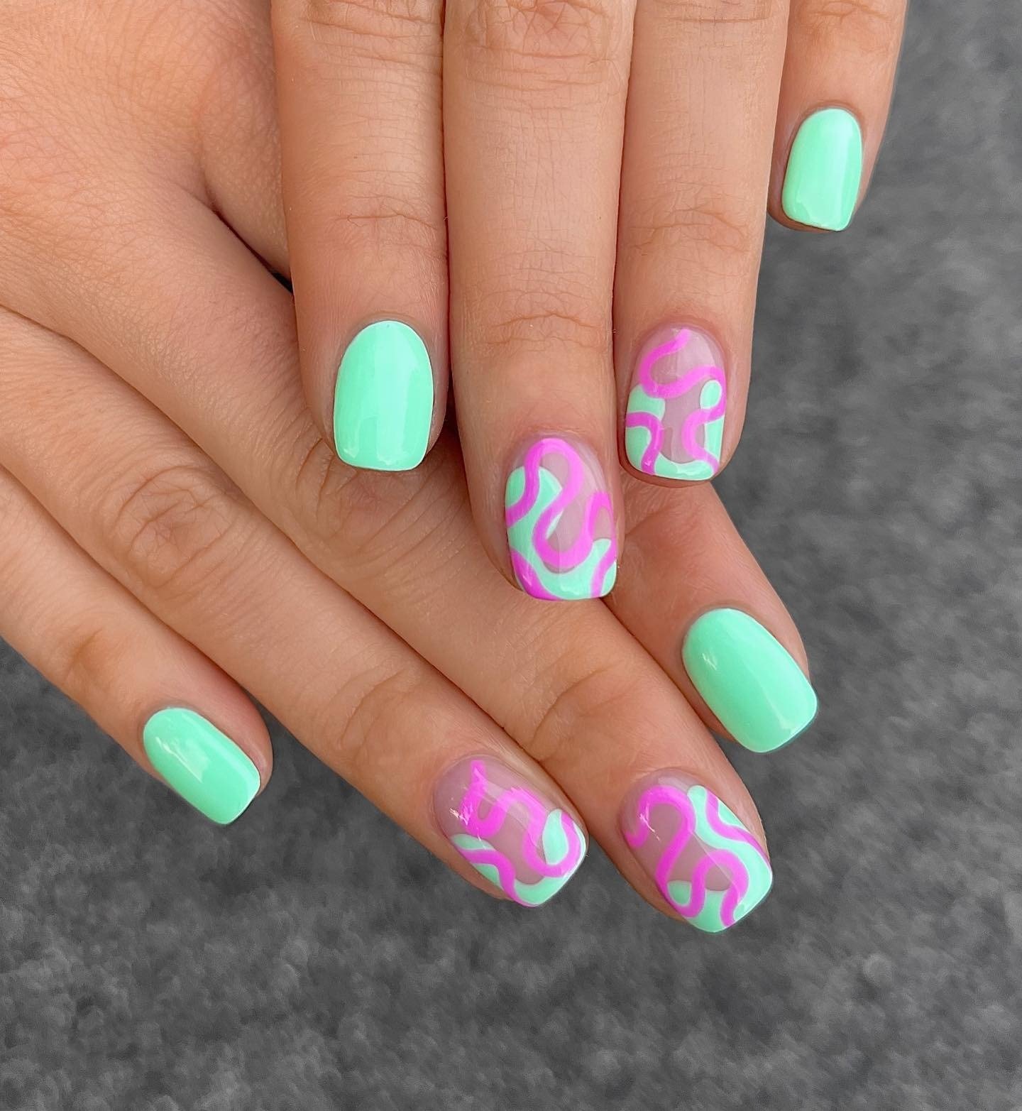 5: Mint and Pink Swirl Nails