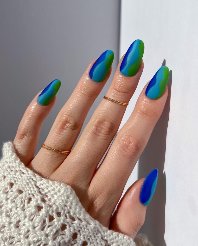 8: Blue Green Wave Nails