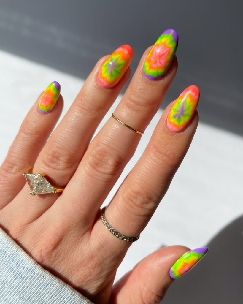 9: Neon Tie Dye Nails