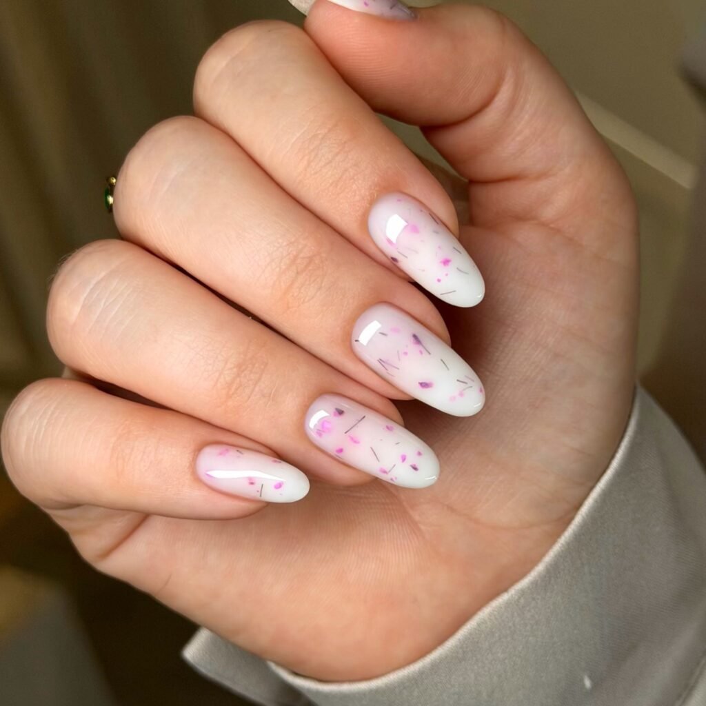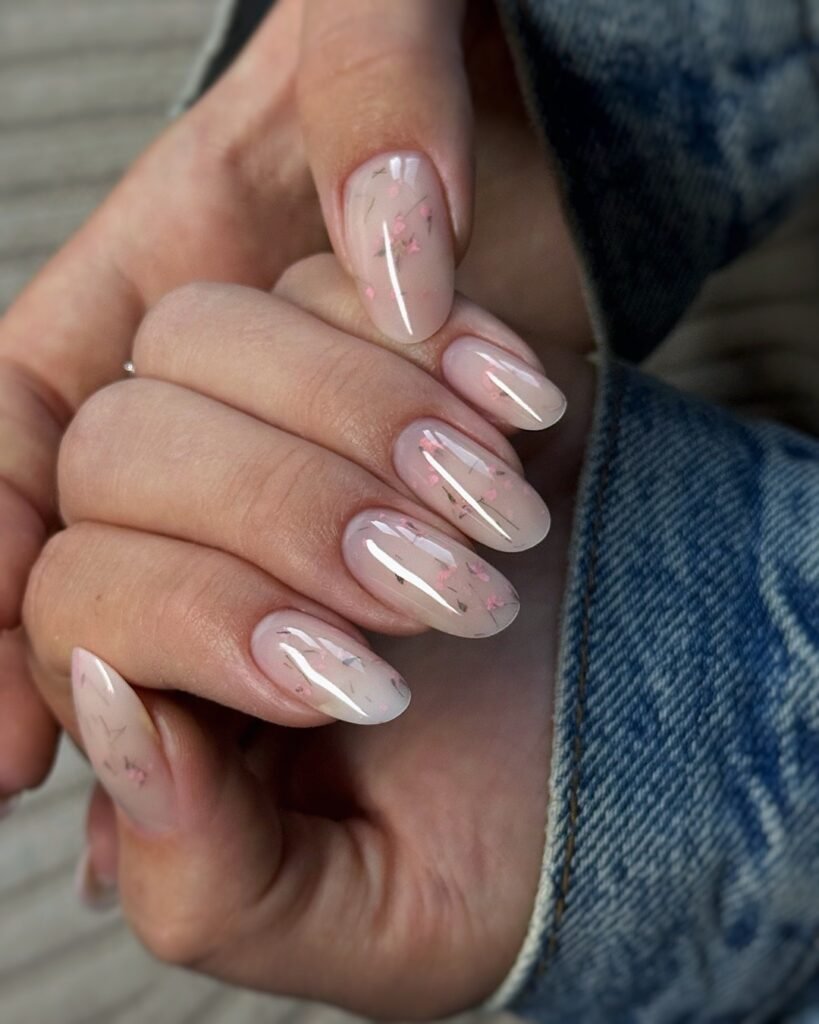 Nude Milky Jelly Nails with Minimal Flower Confetti
