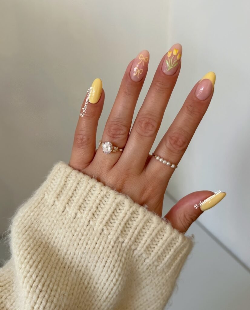 Sunny Yellow & Blush Floral Spring Nail Art