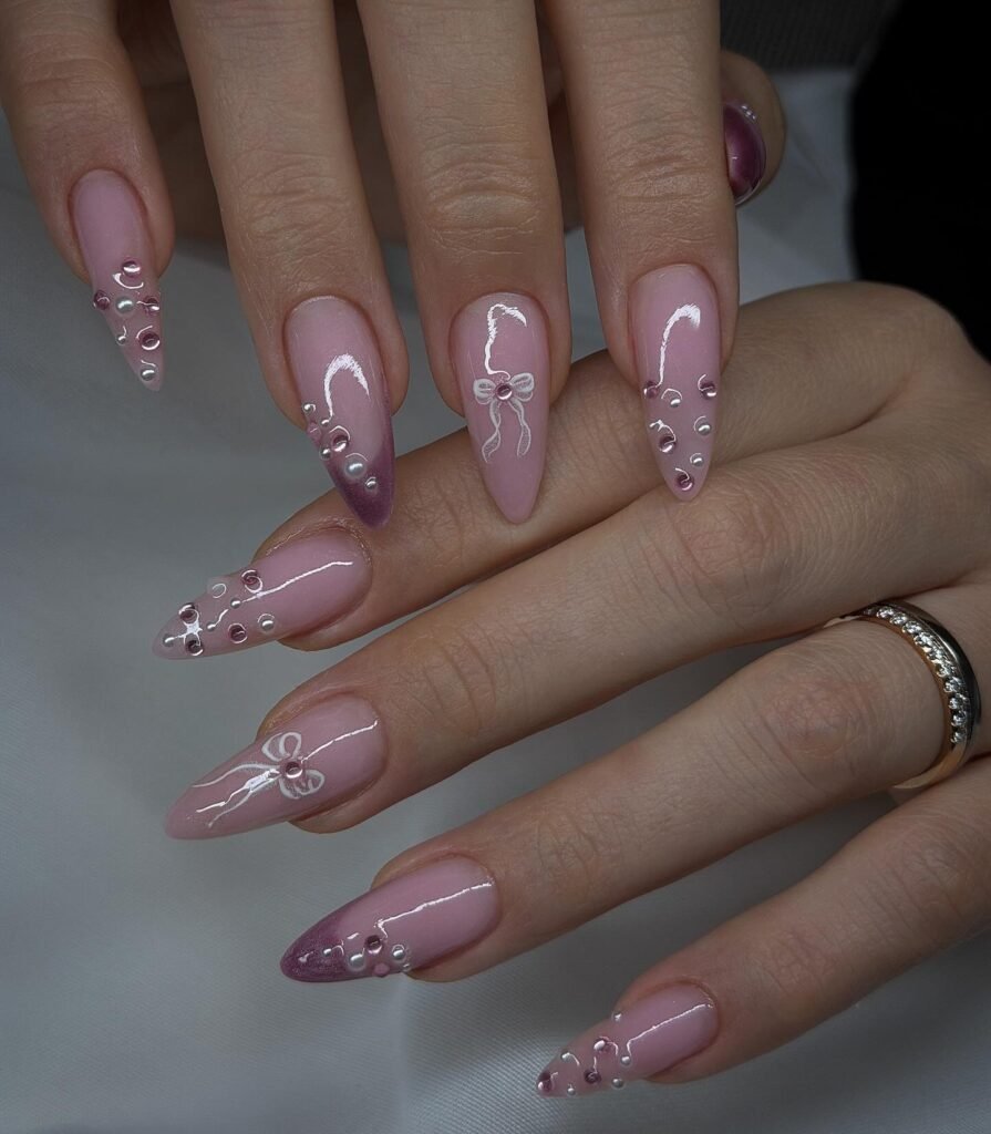 These pretty pink nails add a creative twist to a classic feminine manicure. The soft pink base keeps the design delicate, while the textured floral and bubble-like accents give it a trendy 3D effect. This style feels artistic, playful, and unique without losing its softness. It’s a lovely choice for special occasions or Pinterest audiences looking for standout pink nail inspiration.