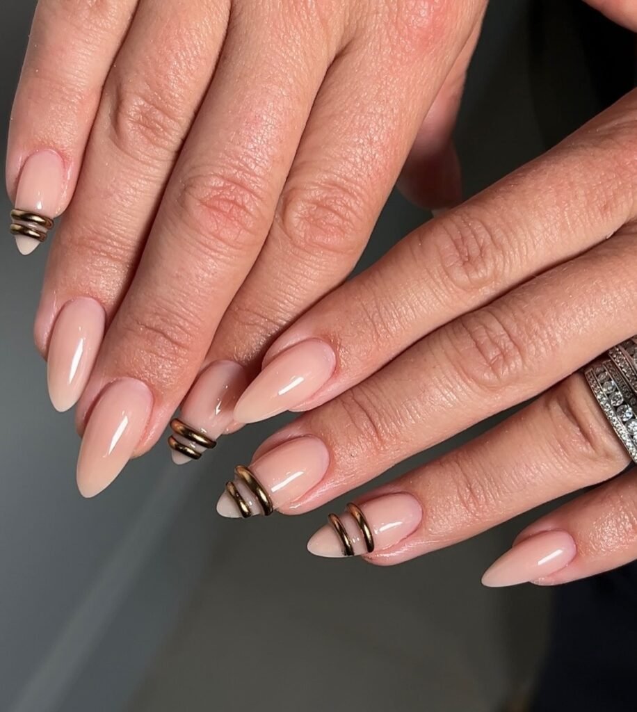 Elegant nude pink almond nails offer a classy and modern manicure that always looks chic. The almond shape helps elongate the fingers, while the soft pink tone adds warmth and femininity. This design is perfect for Pinterest users who love understated beauty and luxurious simplicity. It pairs beautifully with gold jewelry, neutral outfits, and minimal fashion styles for a clean, sophisticated finish.